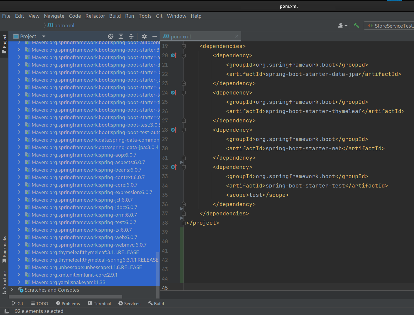 Na koniec przedstawię listę zależności, bibliotek, które możemy dodać do “startera” aplikacji opartej na Spring Framework. Prosta aplikacja web (Spring MVC + Thymeleaf) z możliwością utrwalania danych (Spring Data JPA). Dlaczego o tym piszę? Po dodaniu poniższych 4 zależności otrzymujemy około 90 bibliotek, z których te cztery dodane biblioteki korzystają – prawdziwe morze zależności!